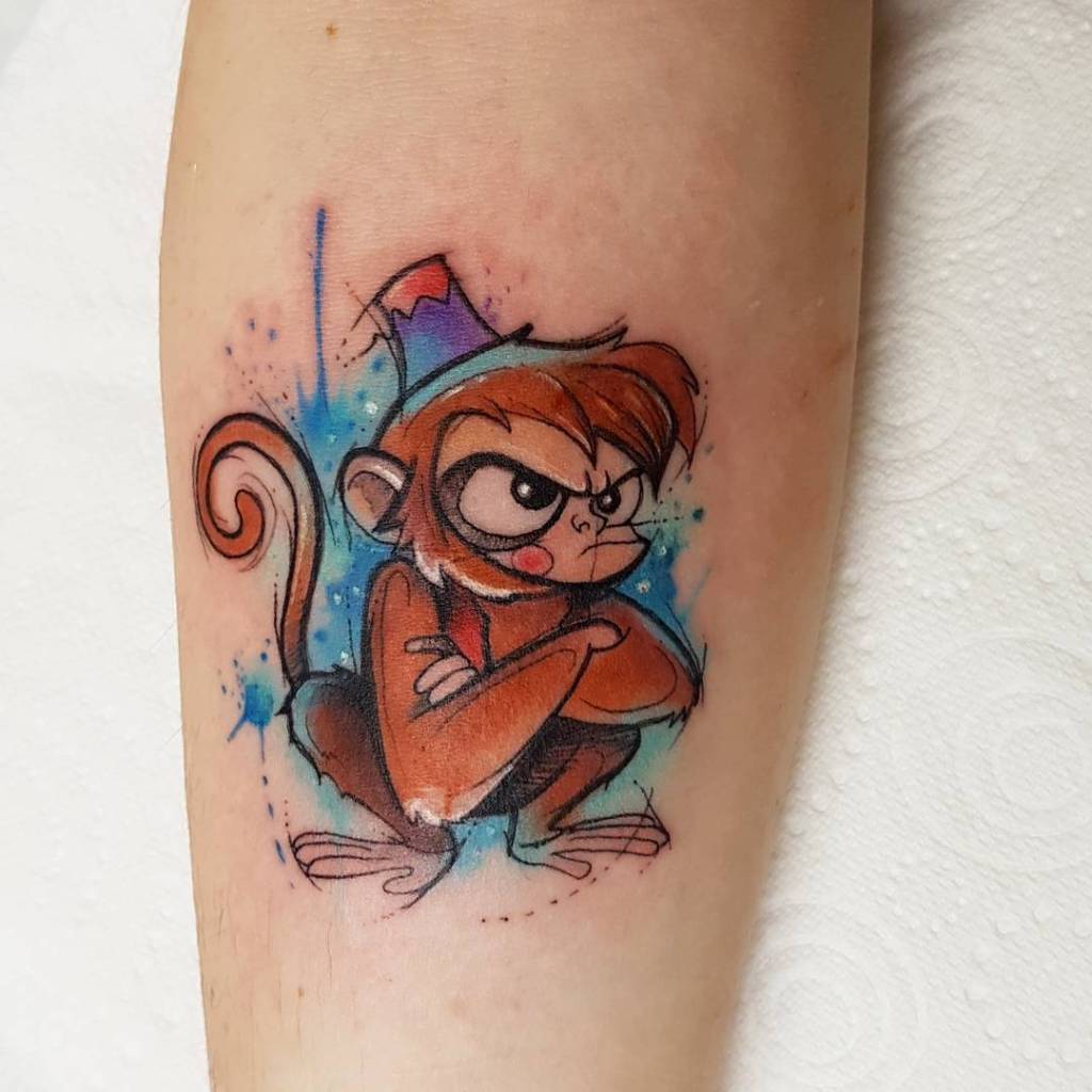 Watercolour Genie and Abu tattoo by @findyoursmile