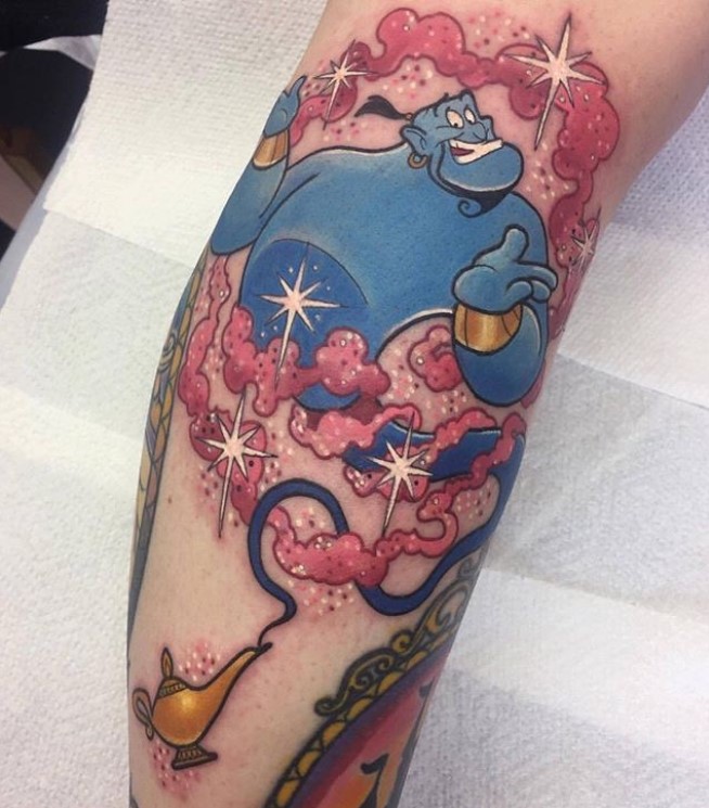 Genie going on a Disney vacation. Tattoo by @tallsarahtattoos