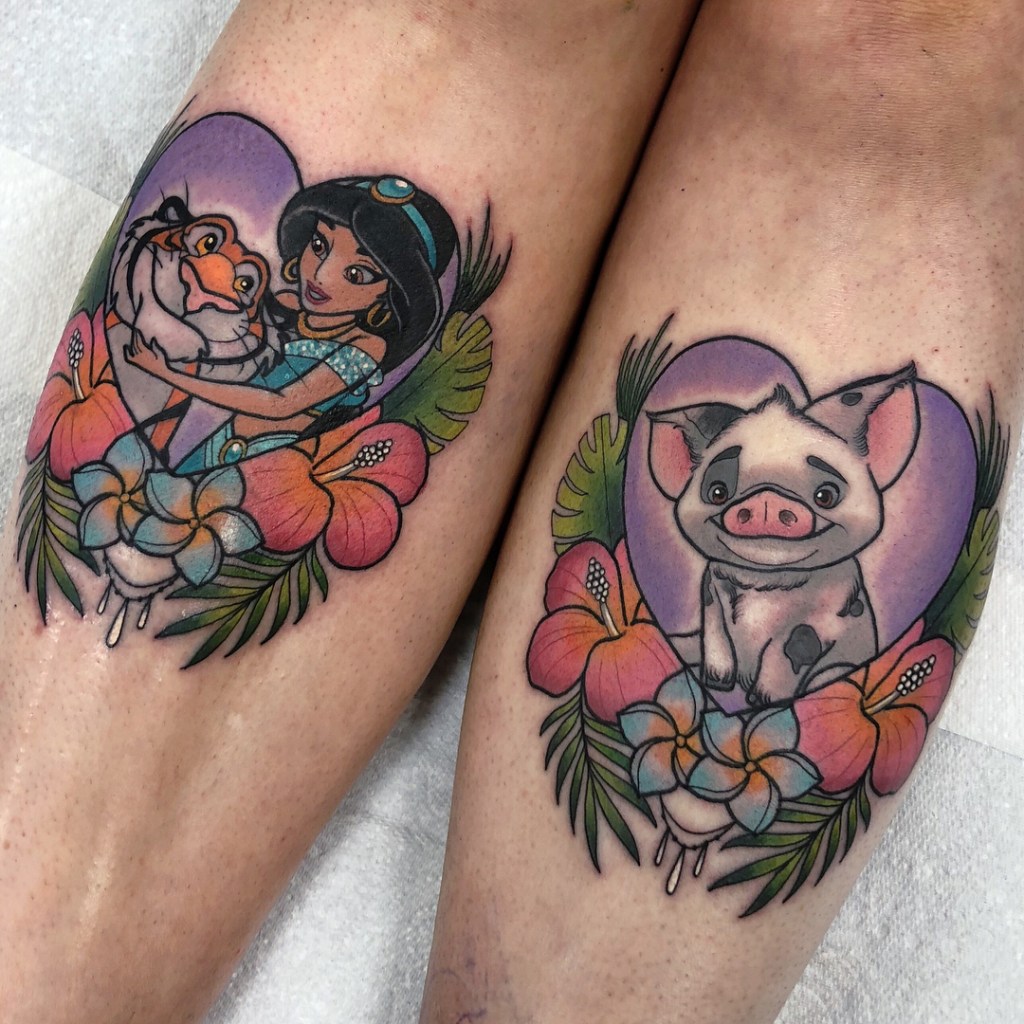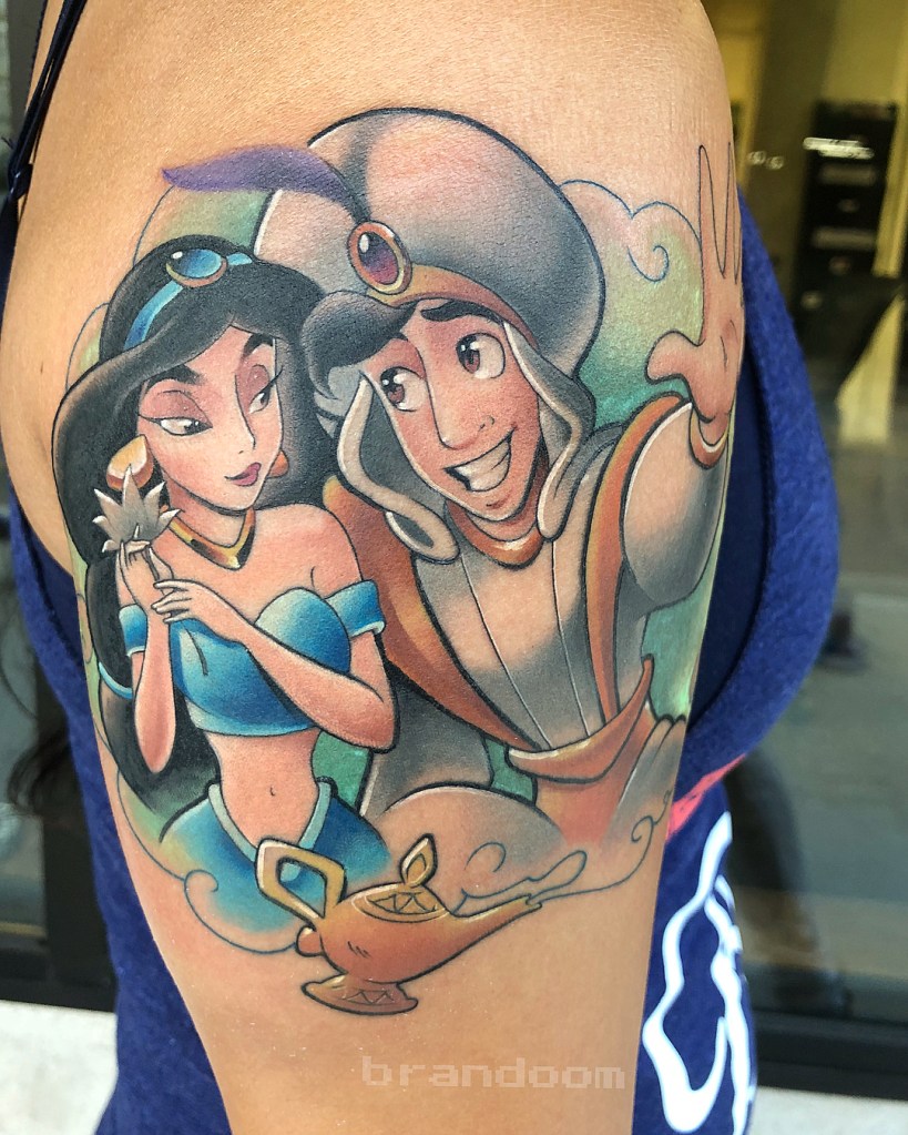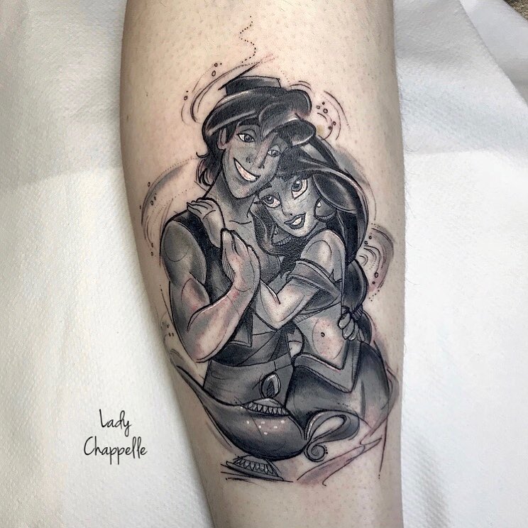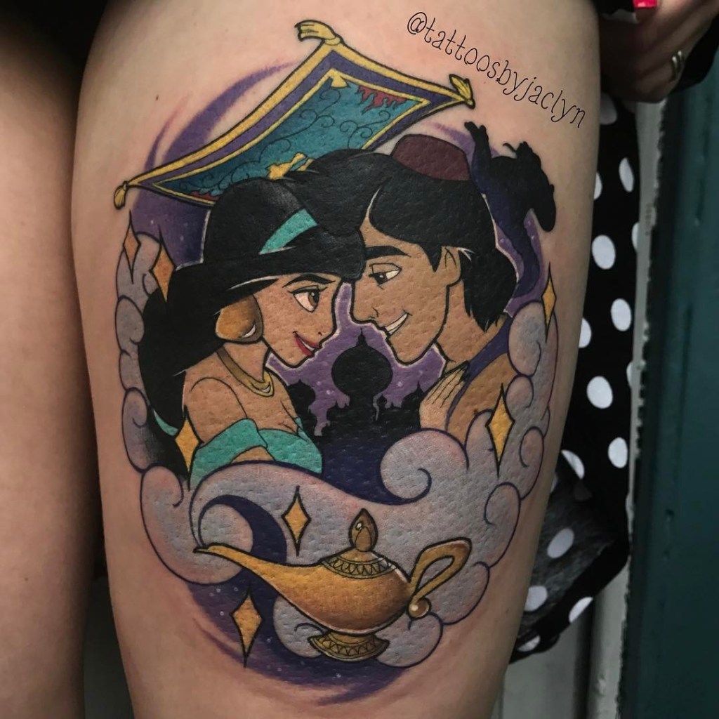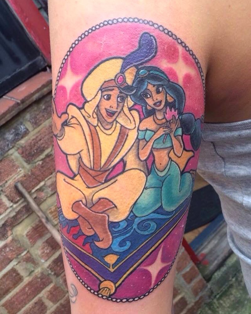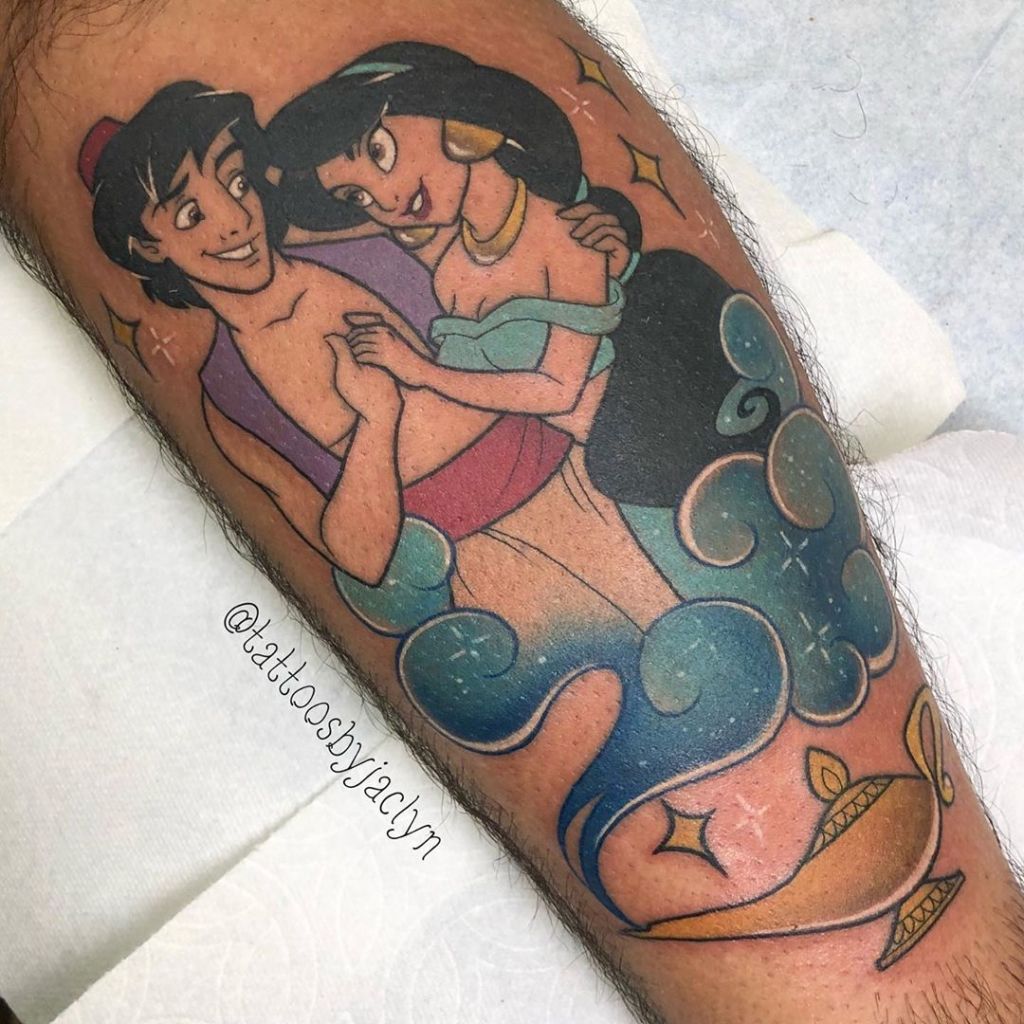 Princess Jasmine and Aladdin at a Disney Park. Tattoo by @missmaelaroux