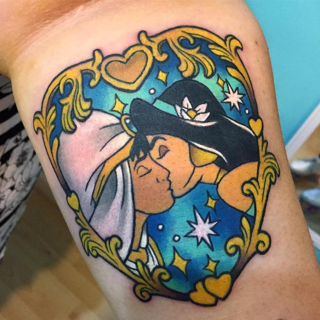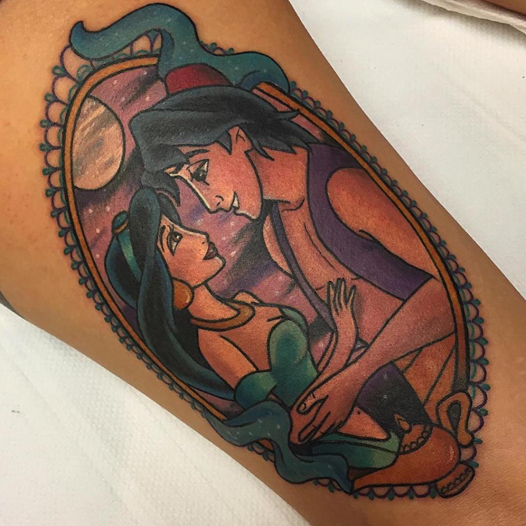 Framed Princess Jasmine and Aladdin tattoo by @keelyglitters