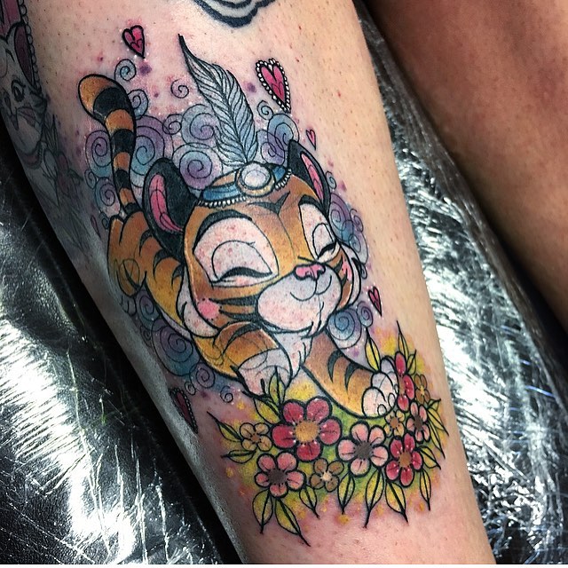 Neo trad Princess Jasmine and Rajah love heart tattoo by @ashleyluka