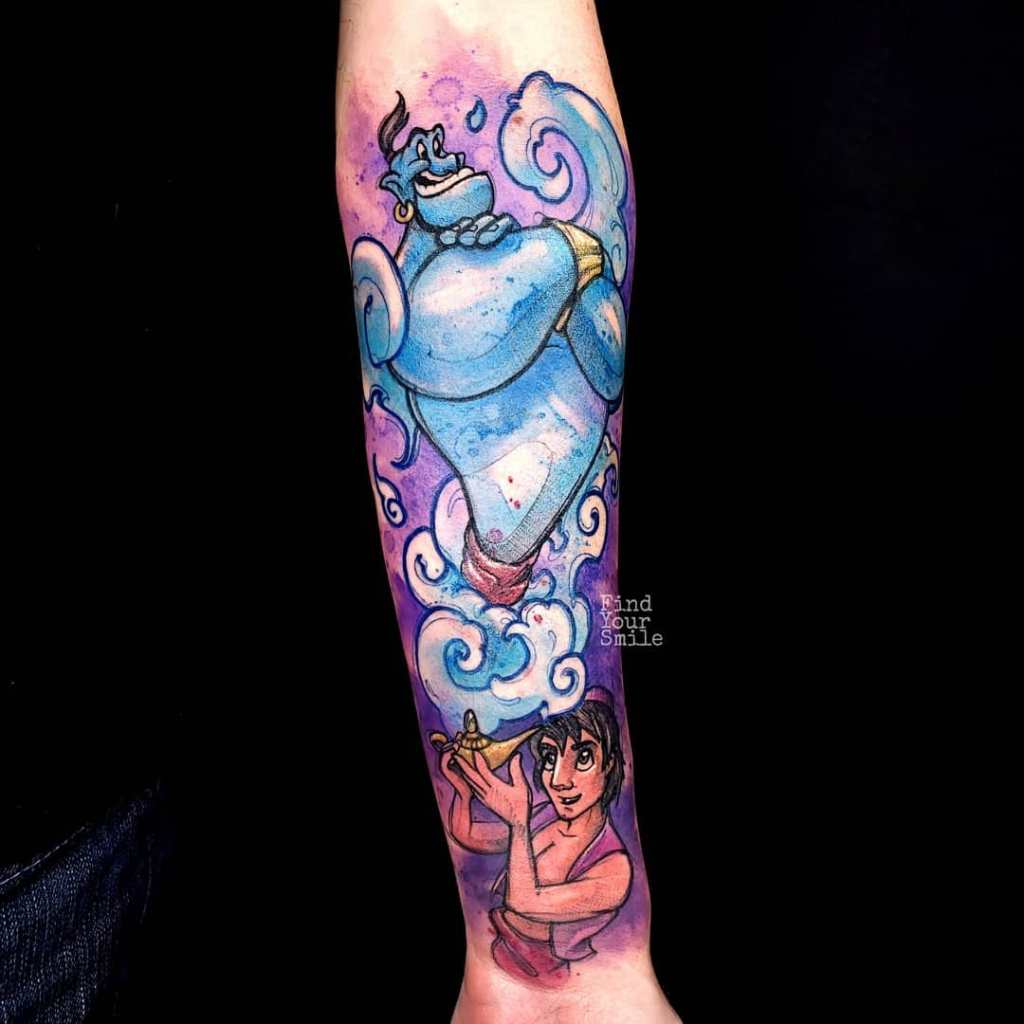 When it comes to getting an Aladdin themed tattoo, these are some questions you should answer: Do you prefer the villainous characters of Jafar and Iago? Are you looking to commemorate Robin Williams as the fun-loving genie? Does the marriage of Aladdin and Princess Jasmine = relationship goals? Or do you just love all things Disney?