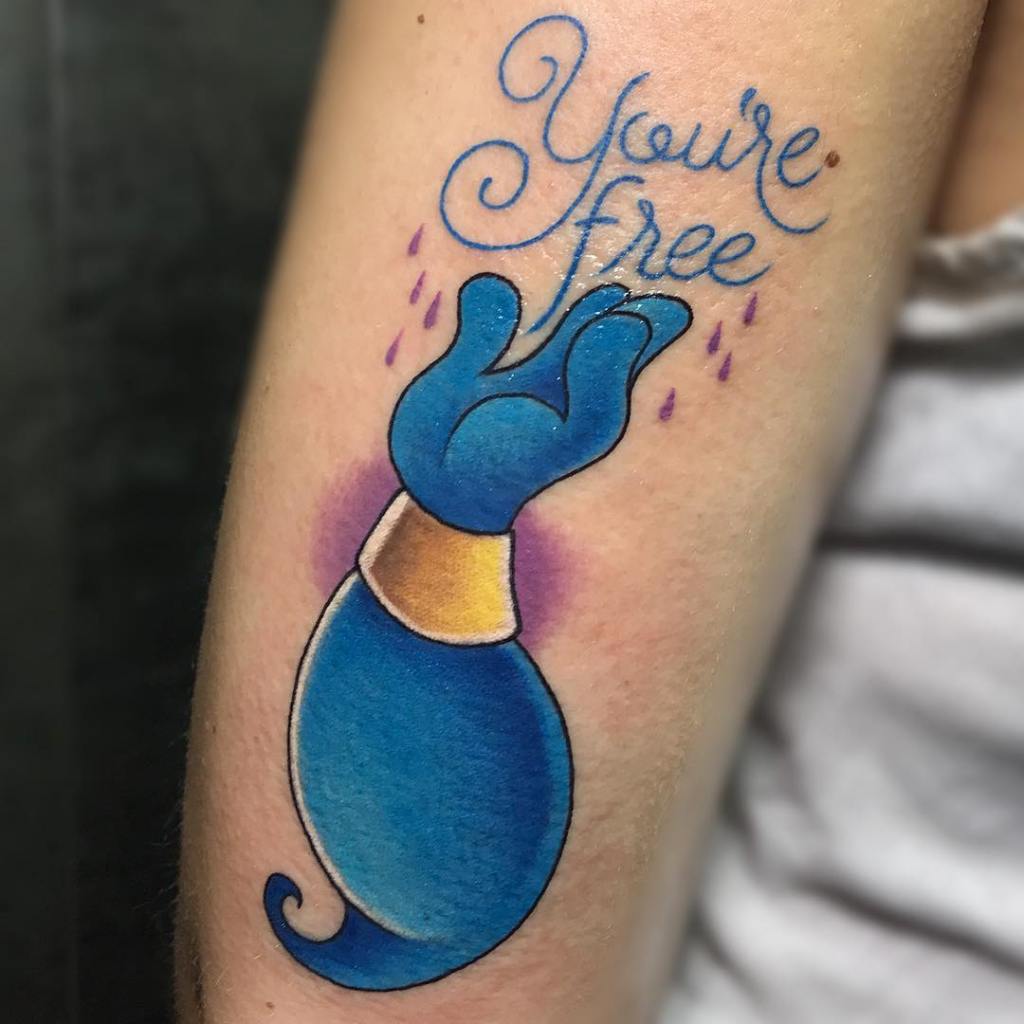 “You’re free.” Genie arm tattoo by @tattooyauu