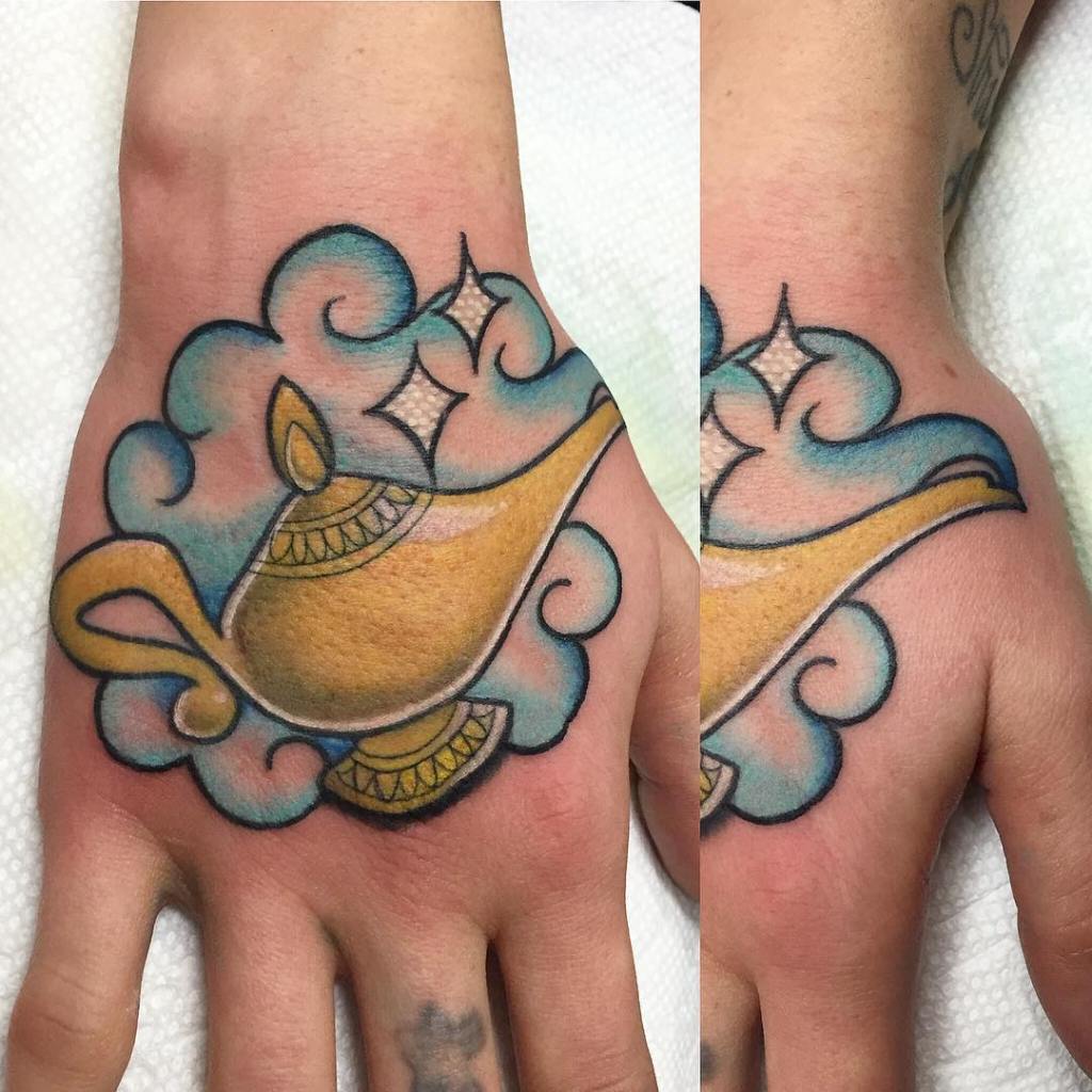 Genie lamp hand tattoo by @tattoosbyjaclyn