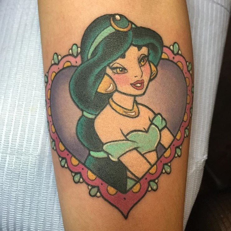 Princess Jasmine love heart tattoo by @alexstrangler