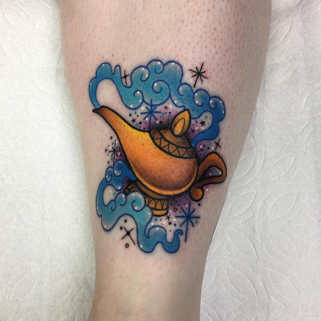 Aladdin, Princess Jasmine and Genie lamp tattoo by @tattoosbyjaclyn