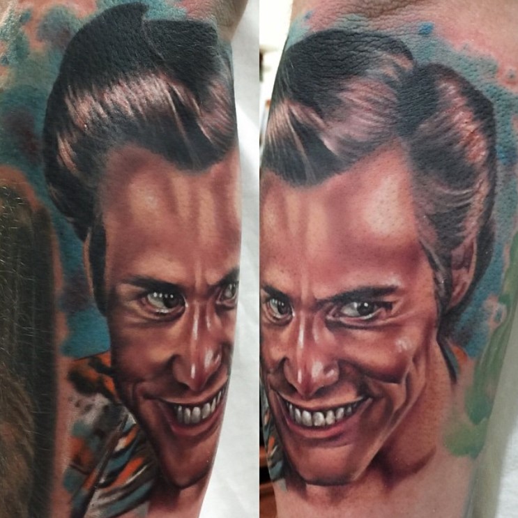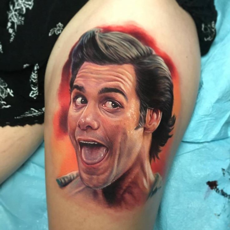 Is Jim Carrey one of your favourite comedic actors? A tattoo of the man would surely make you chuckle when seeing it every day.