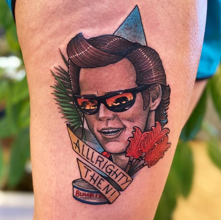 Take a look at these Ace Ventura themed tattoos and be inspired by the film’s absurd and ridiculous storyline, along with Carrey’s catchphrases and facial expressions, in order to create an idea for your own tattoo.