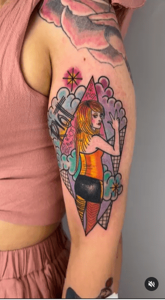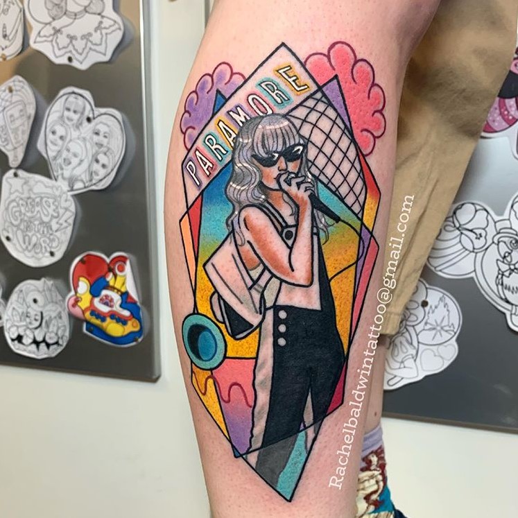 Colourful Hayley Williams x Paramore tattoo by @rachelbaldwintattoo