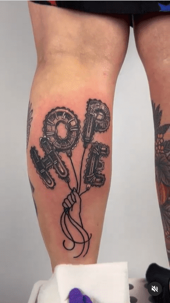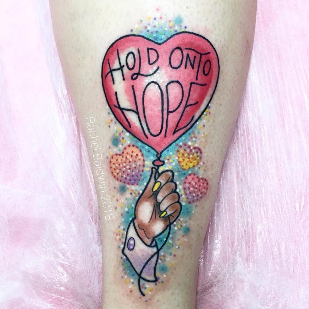HOPE balloons tattoo by @rachelbaldwintattoo