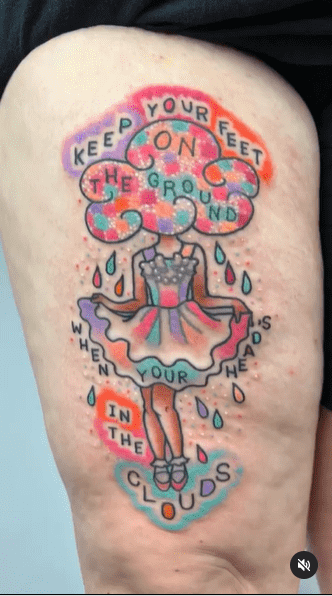 “Keep your feet on the ground when your head’s in the clouds.” Paramore themed tattoo by @rachelbaldwintattoo