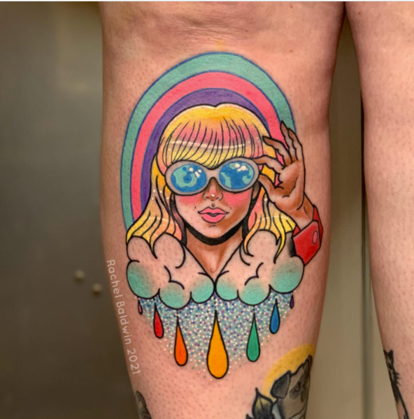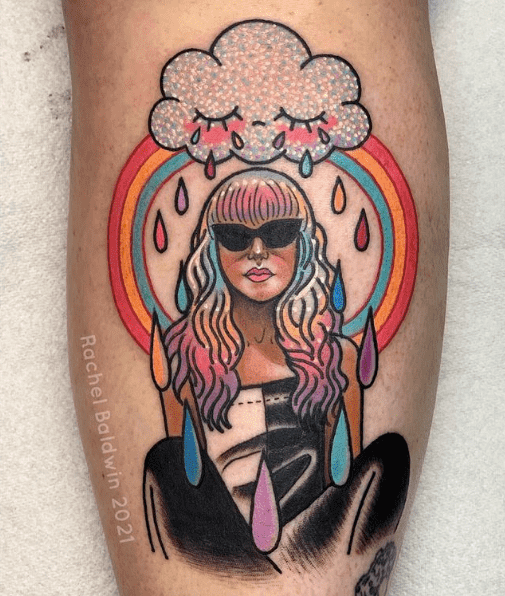 Sparkly cloud raining on Hayley Williams. Tattoo by @rachelbaldwintattoo