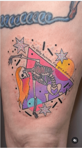 Graphic Hayley Williams skeleton tattoo by @rachelbaldwintattoo