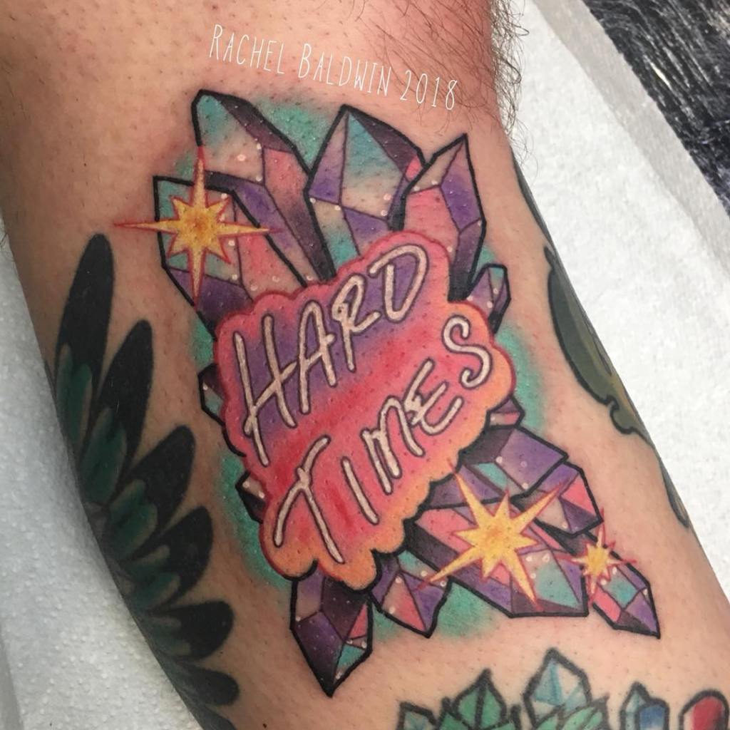 Hard Times crystals tattoo by @rachelbaldwintattoo