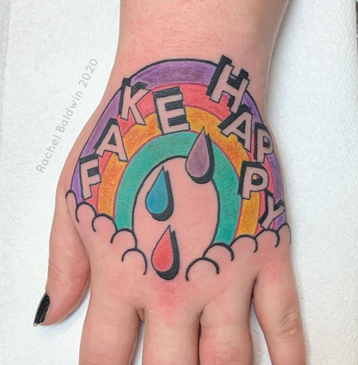 Paramore – Fake Happy hand tattoo by @rachelbaldwintattoo