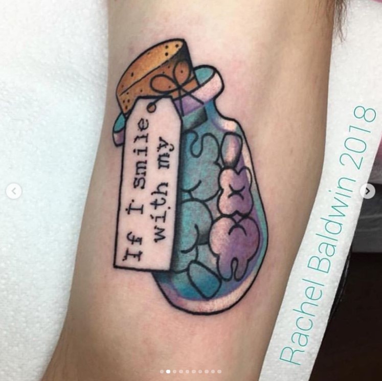 Paramore themed jar of teeth tattoo by @rachelbaldwintattoo