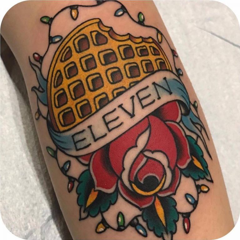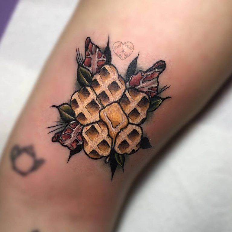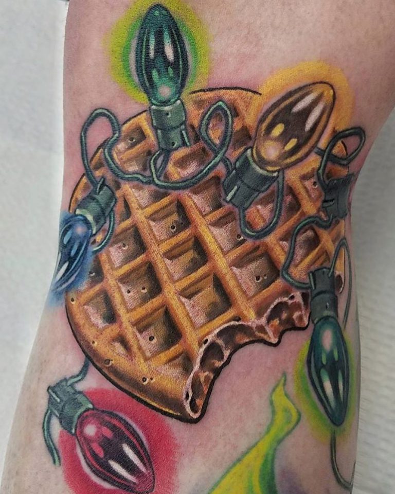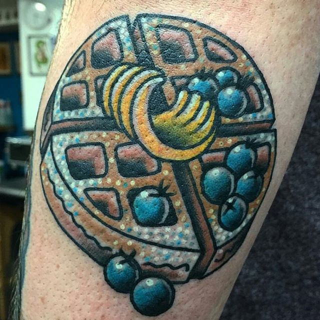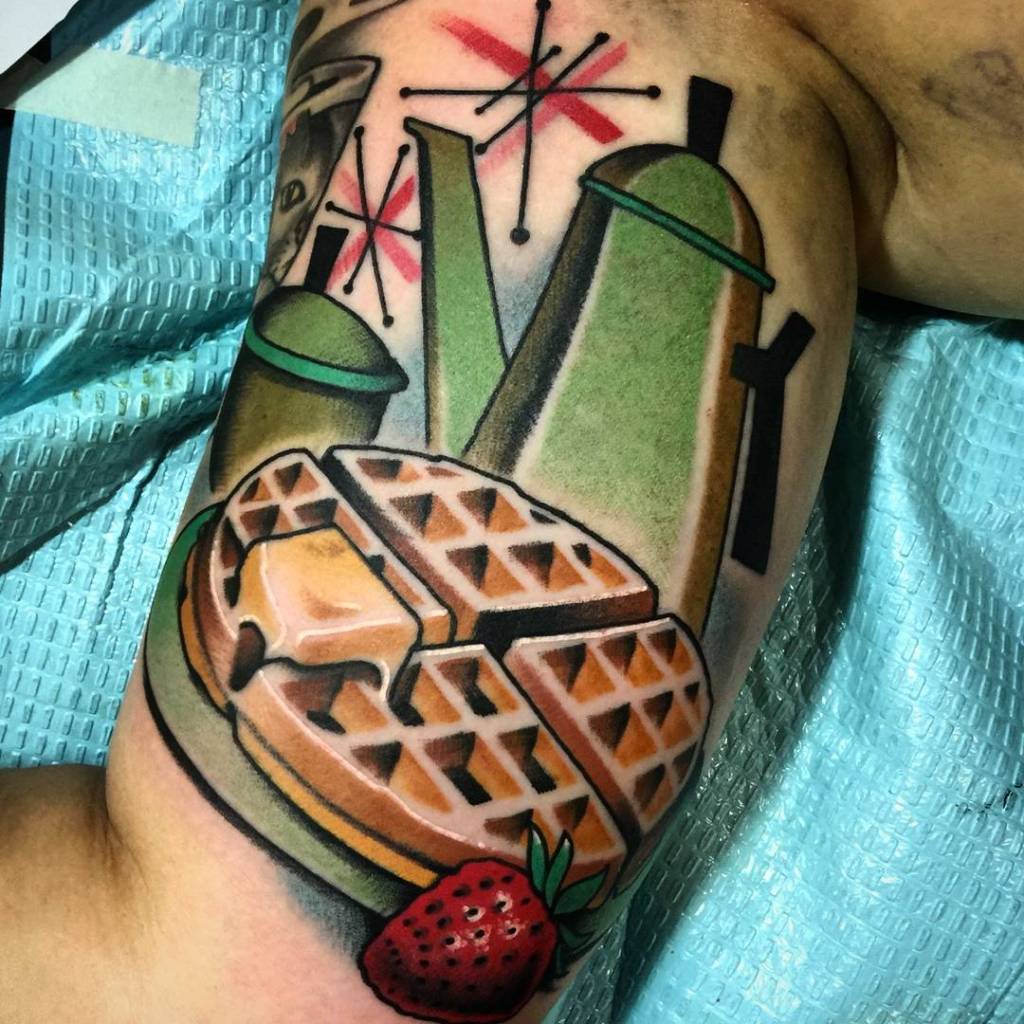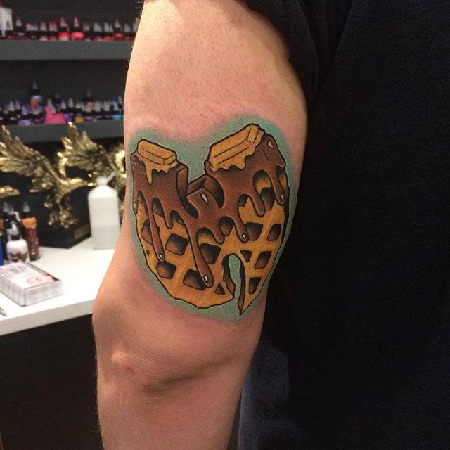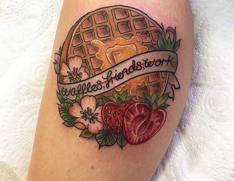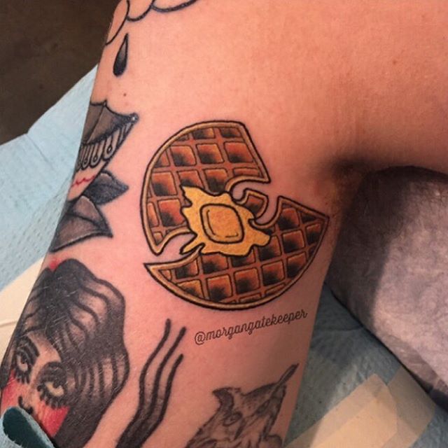 When it comes to waffle tattoos, the most common themes seem to be Stranger Things and the Wu-Tang Clan. No matter whether you settle on a television show, music, or fruity themed waffle tattoo, you’ll be left with one tasty-looking piece.