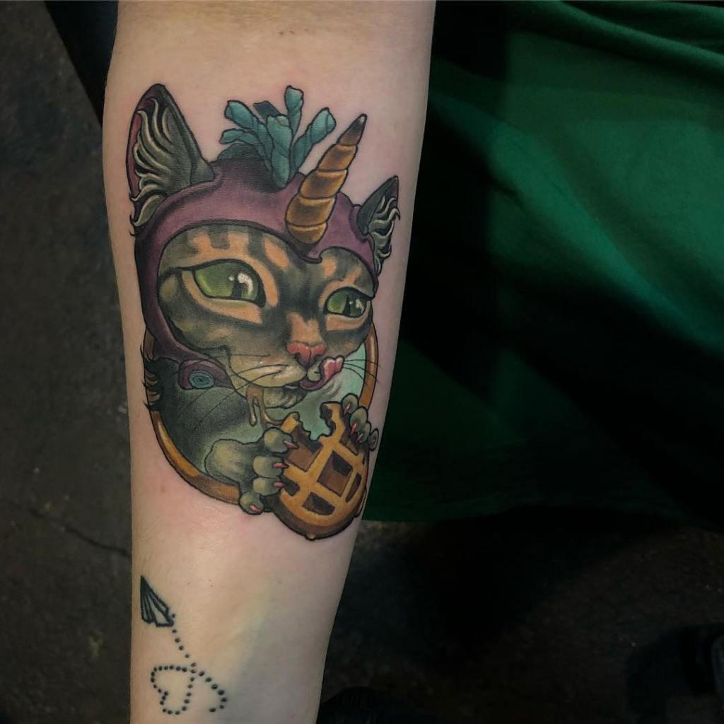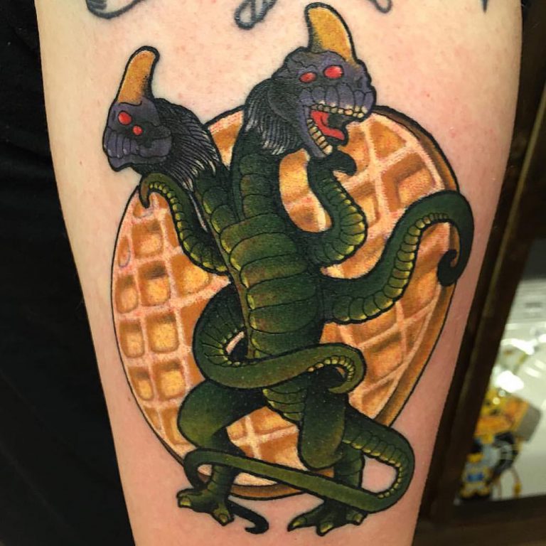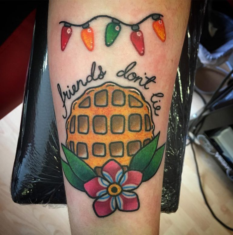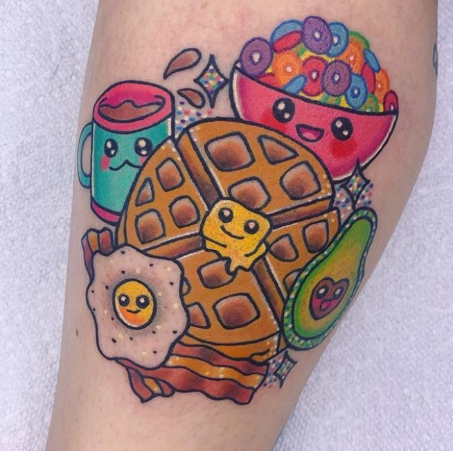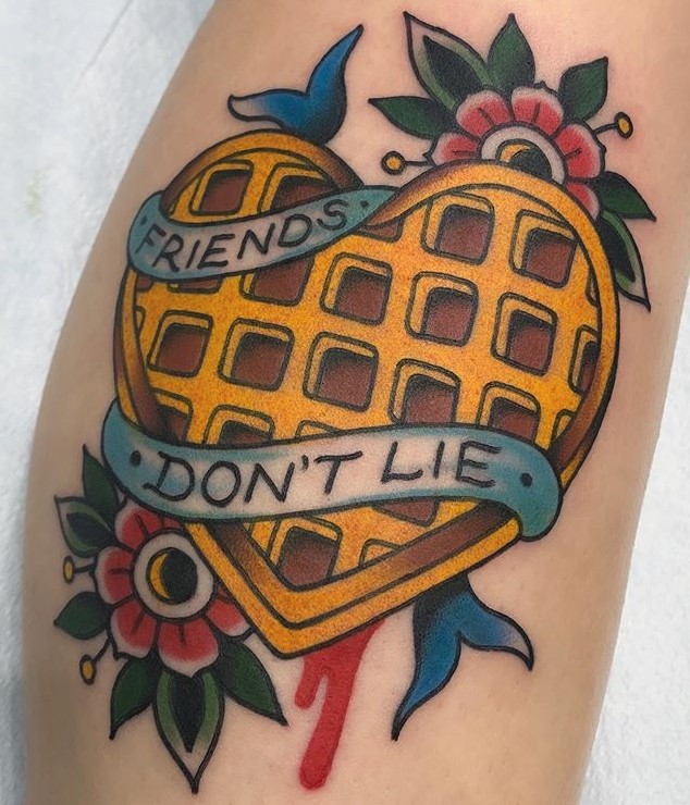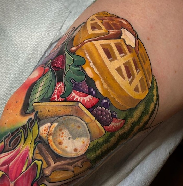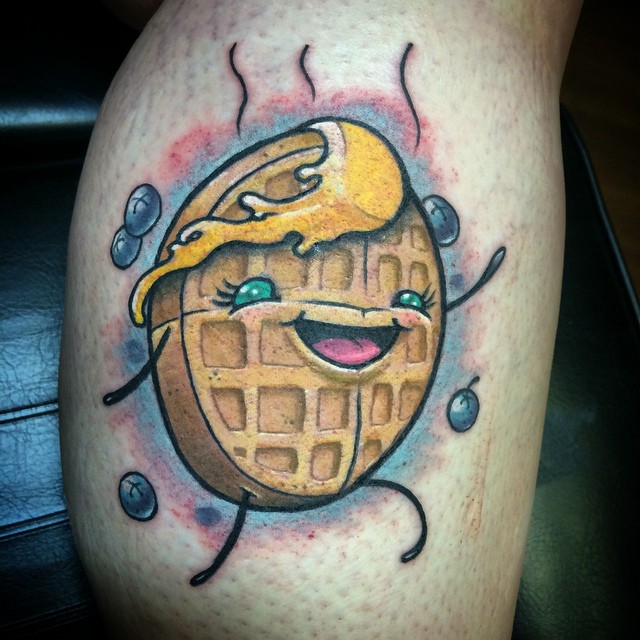 When it comes to waffle tattoos, the most common themes seem to be Stranger Things and the Wu-Tang Clan. No matter whether you settle on a television show, music, or fruity themed waffle tattoo, you’ll be left with one tasty-looking piece.