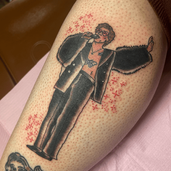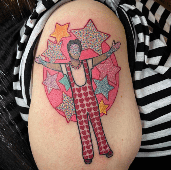 As someone experimental with fashion, you could dress your Harry Styles tattoo in your favourite outfit of his, or even design a new outfit from scratch.