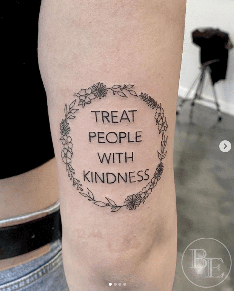 “Treat people with kindness.” Floral blackwork tattoo by @brenna.eagan