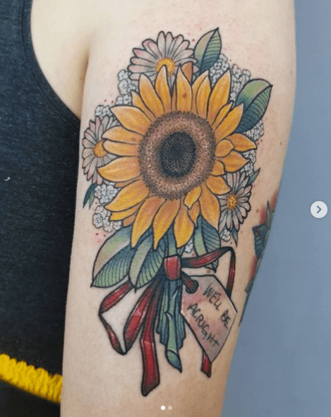 We’ll be alright. Harry Styles themed floral bouquet tattoo by @zoefrasertattoo