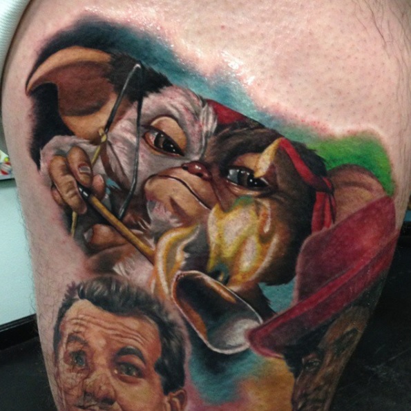 Colour realism Stripe and Gizmo tattoo by @paulmarino917