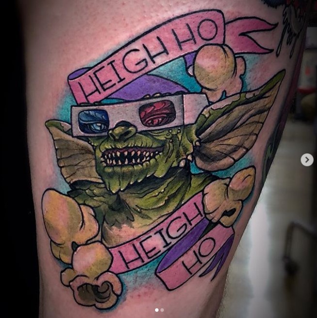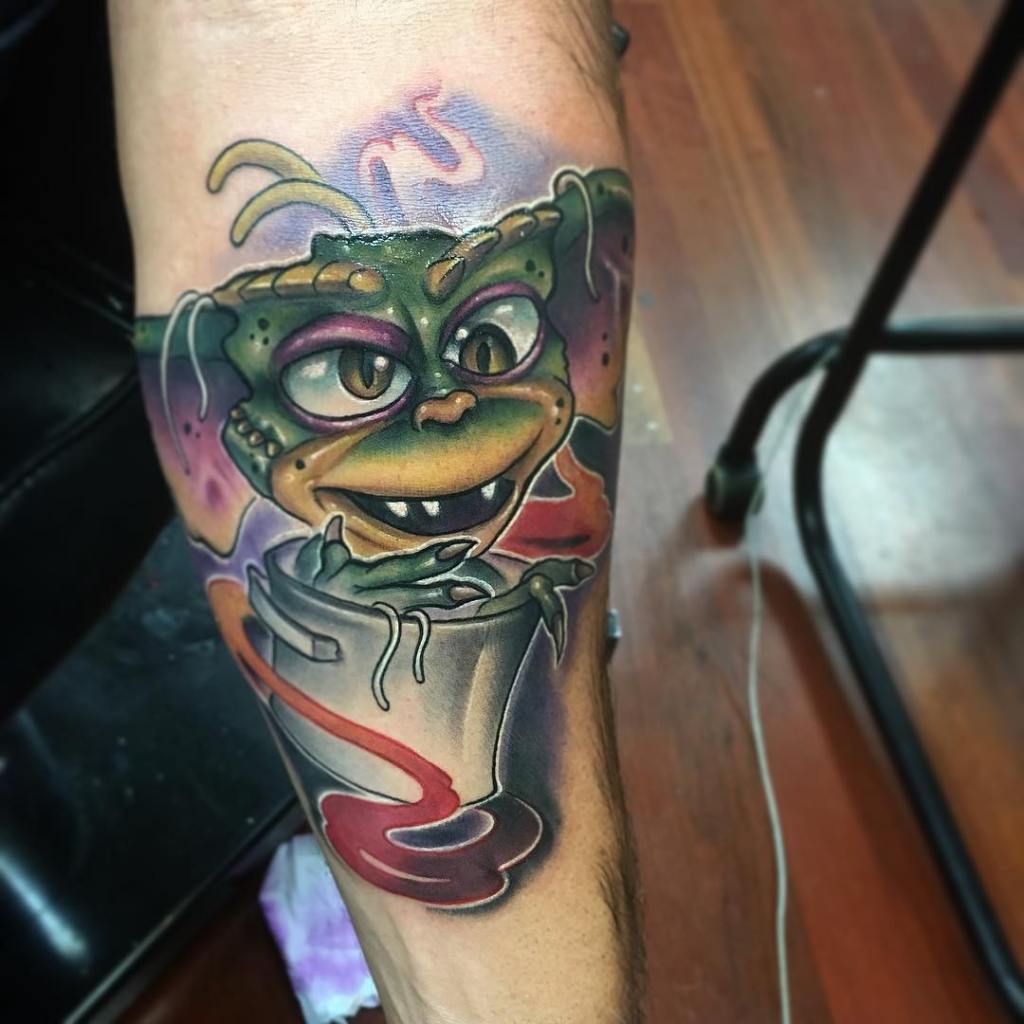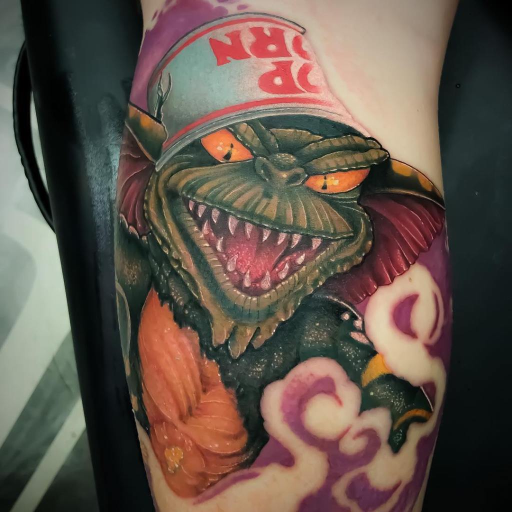 Colour realism half healed, half fresh Gremlins tattoo by @thealexwright
