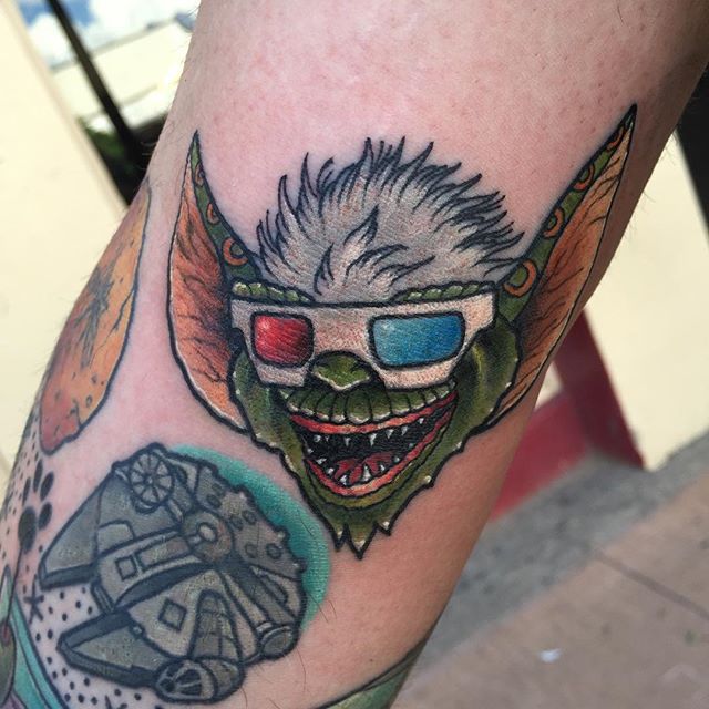Gremlin wearing 3D glasses. Tattoo by @jayjoree