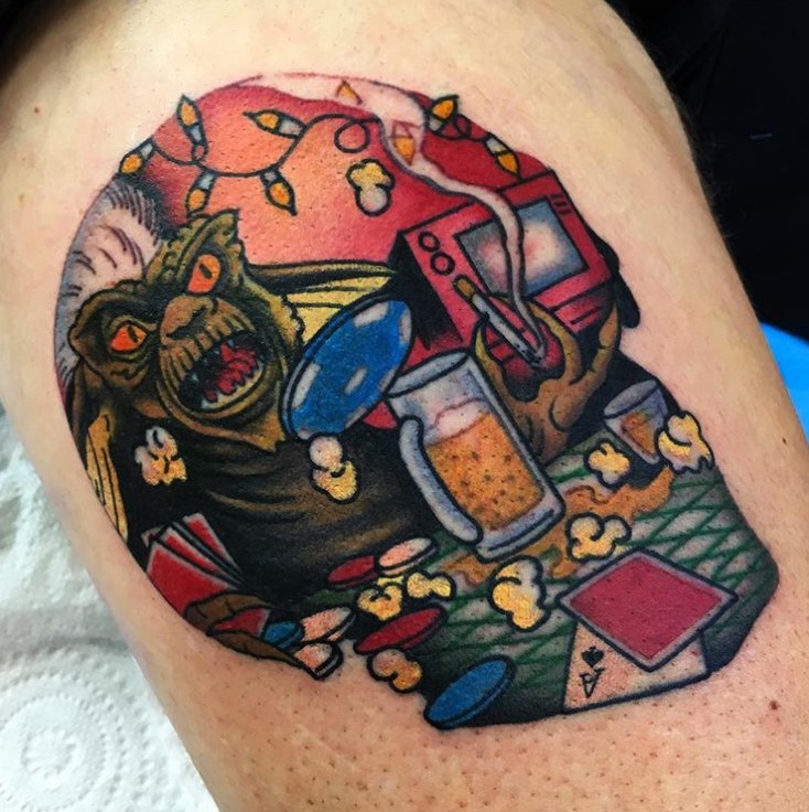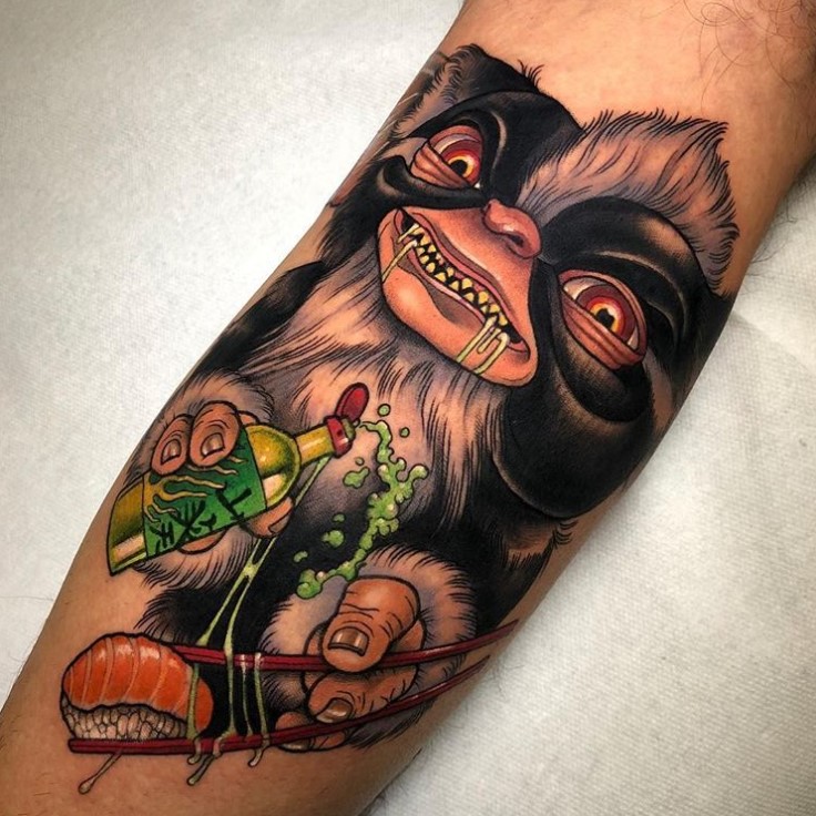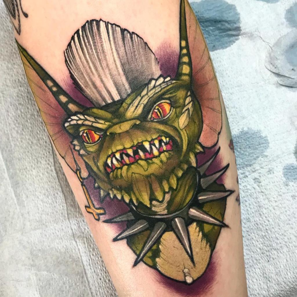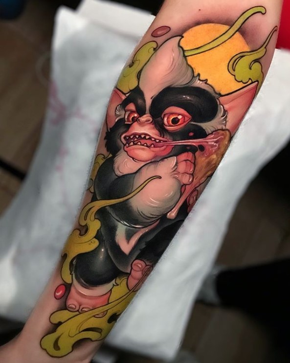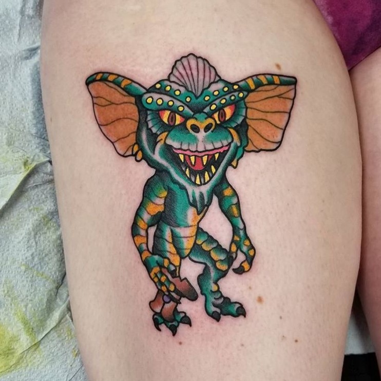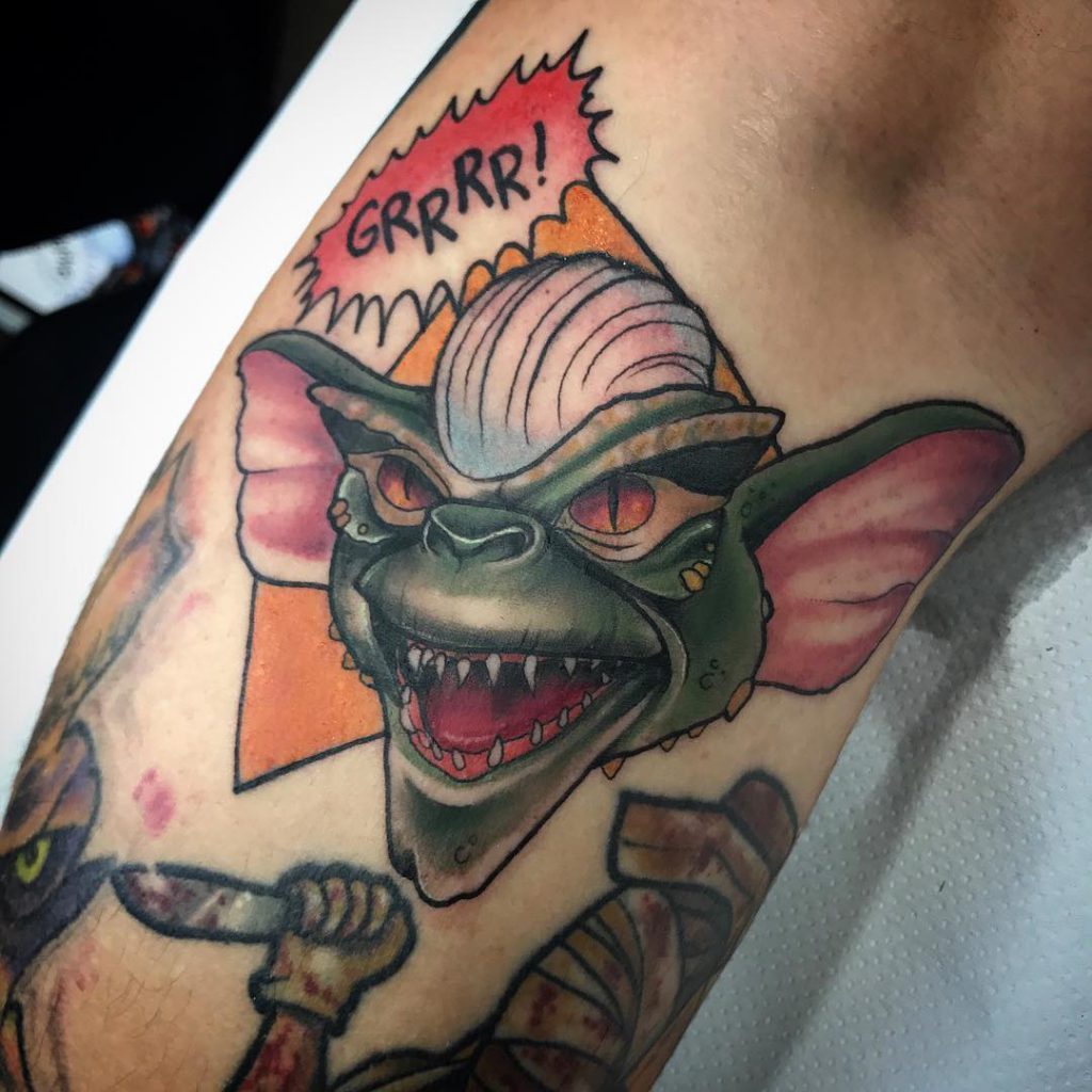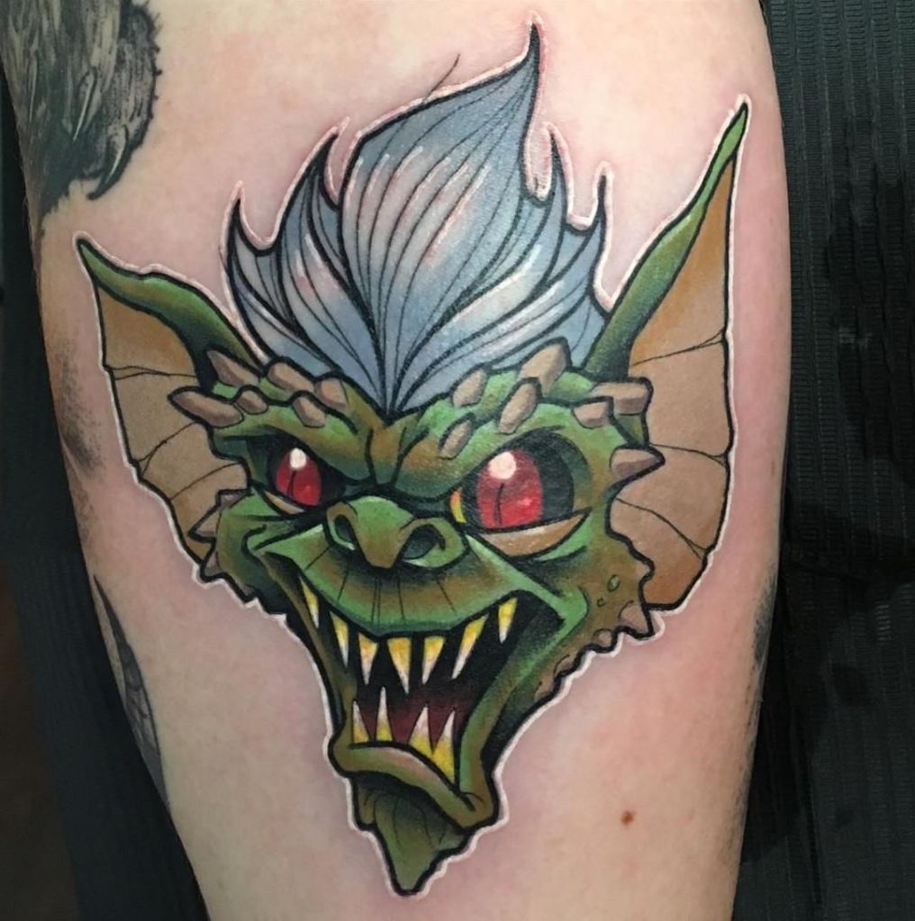 Traditional style Gremlins tattoo by @maxcadytattoo