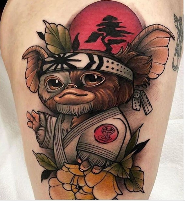 Neo trad Gremlins x The Karate Kid tattoo by @krishtattoo