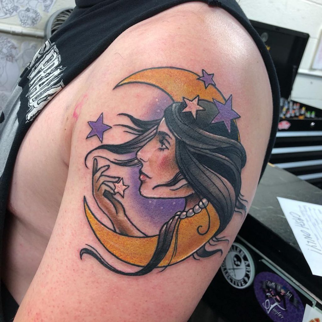 Illustrative neo trad Cher tattoo by @ellisarchtattoo