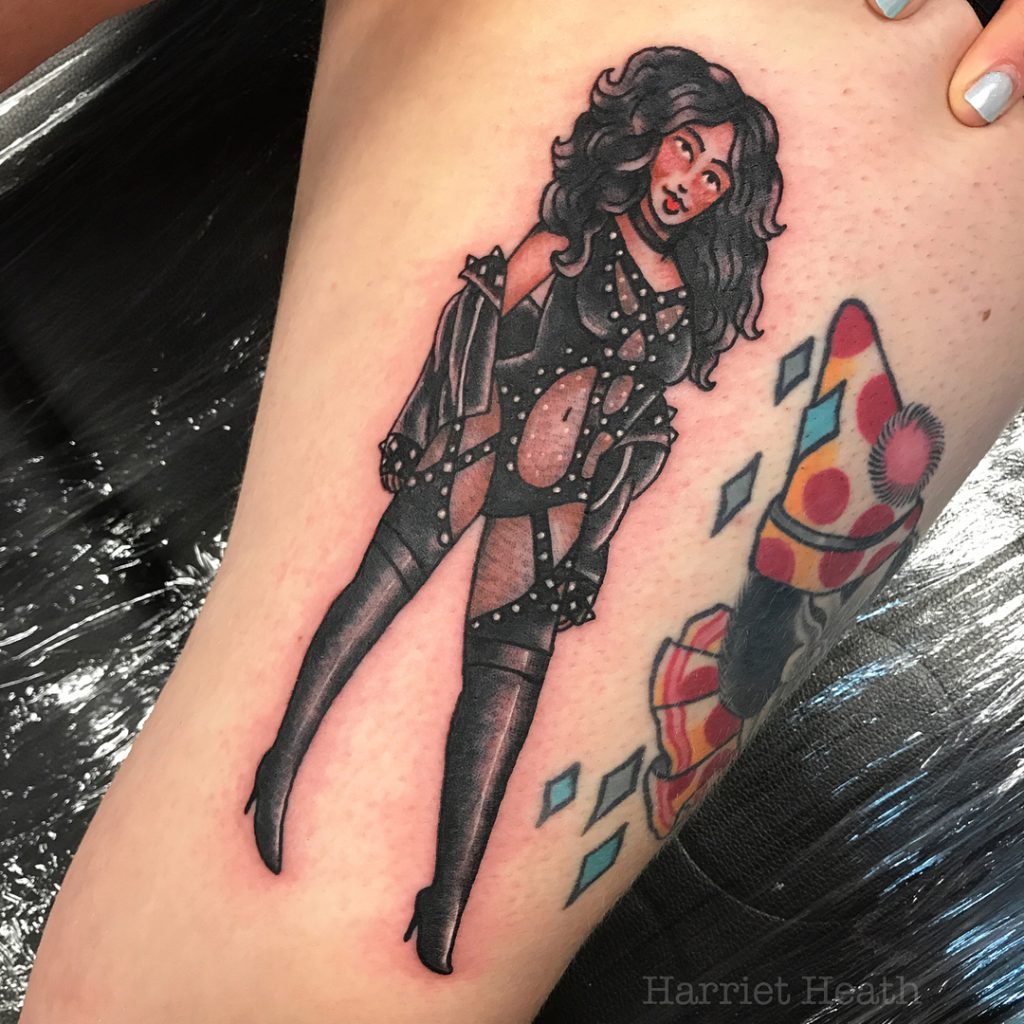 Neo trad Cher pin-up tattoo by @brittxwhitman