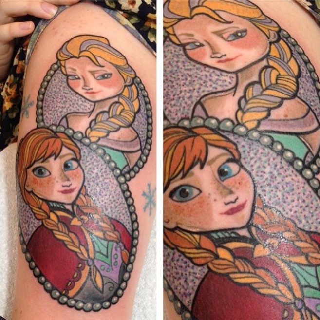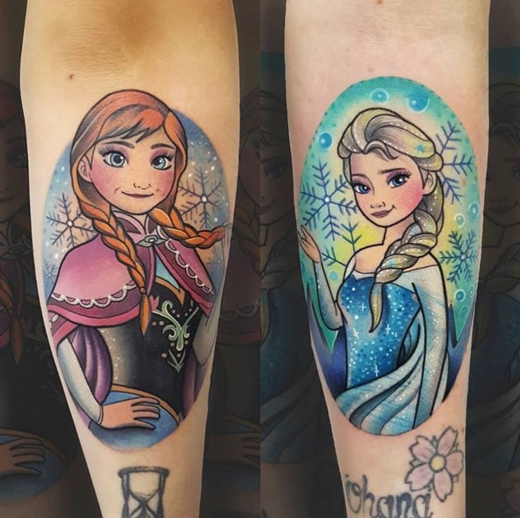 Anna and Elsa tattoo by @paintedladytattoo