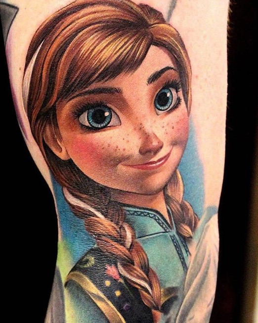 When curating images for this list, I was so pleased to see just how unique all of these Frozen tattoos are; there’s Elsa, Anna, Olaf and Sven, and even a few crossover pieces with some other Disney characters.