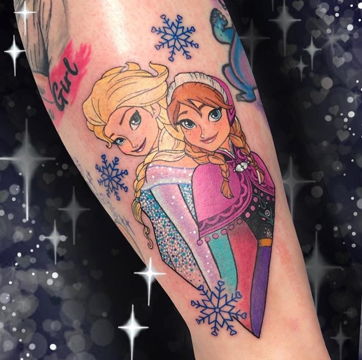 Elsa and Anna tattoo by @carly.kawaii