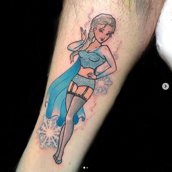 Elsa pin-up tattoo by @morguettetattoo