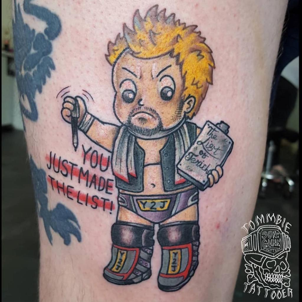 I’ve sorted through all the wrestling tattoos I could find online and have compiled for you a collection of the ten best Chris Jericho tattoos. Use these as inspiration, but also reflect on your favourite match, ring attire, entrance or promo of Jericho to give your tattoo artist some direction in regards to the type of tattoo you want.