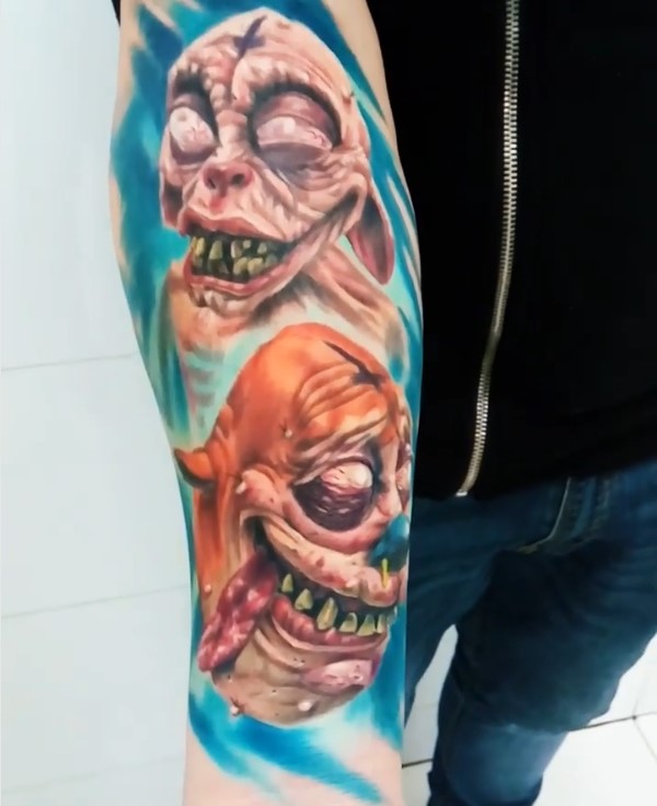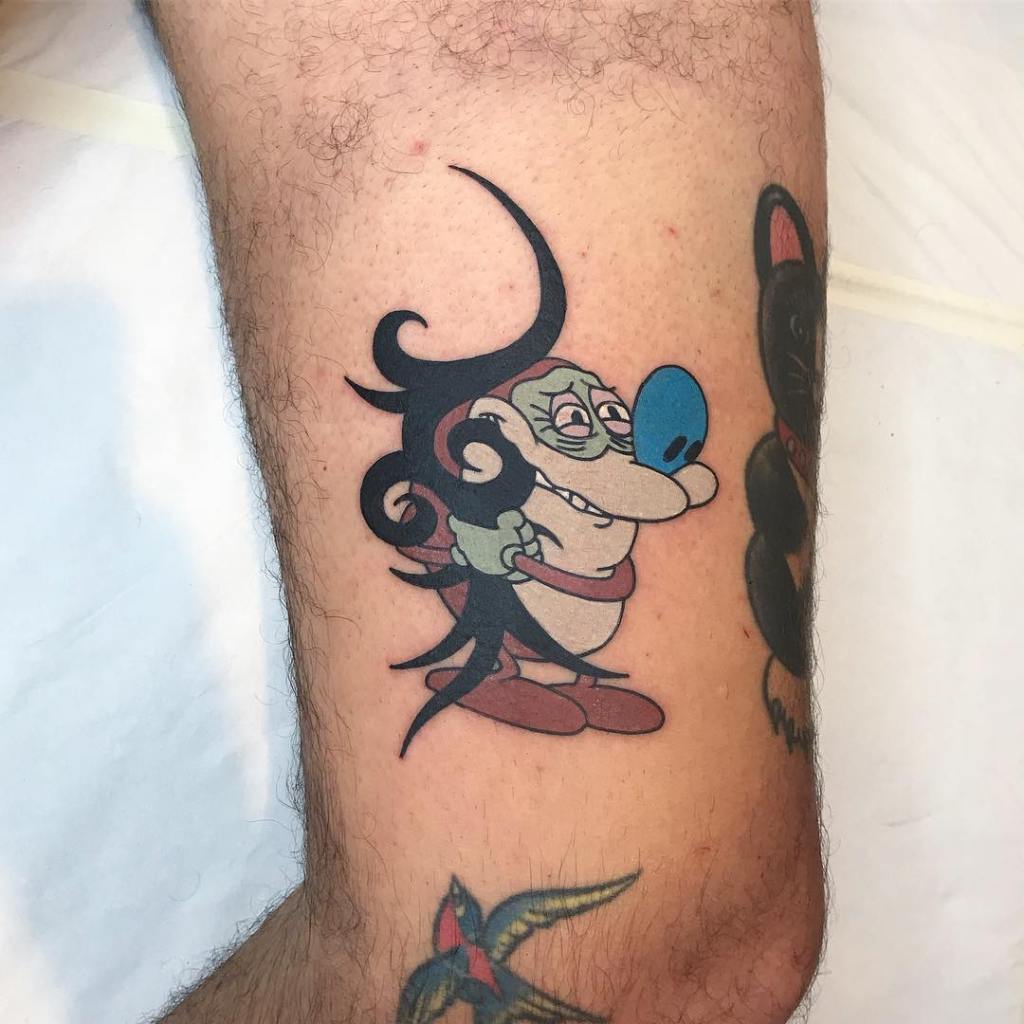 Creepy Ren and Stimpy tattoo by @nickbaldwintattoo