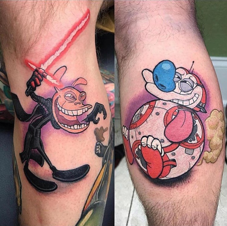 Ren and Stimpy styled as Kylo Ren and BB-8. Tattoos by @jaredbent_tattoos