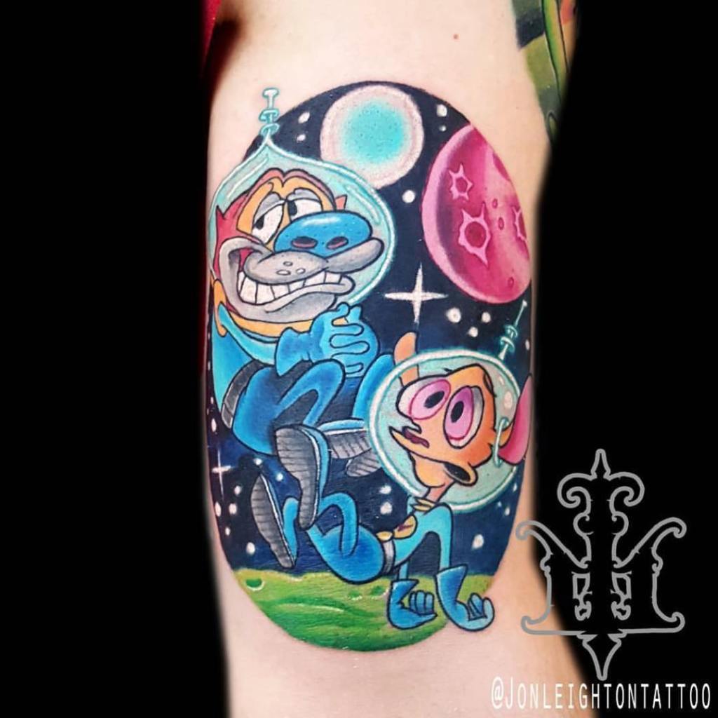 Ren and Stimpy in space tattoo by @jonleightontattoo