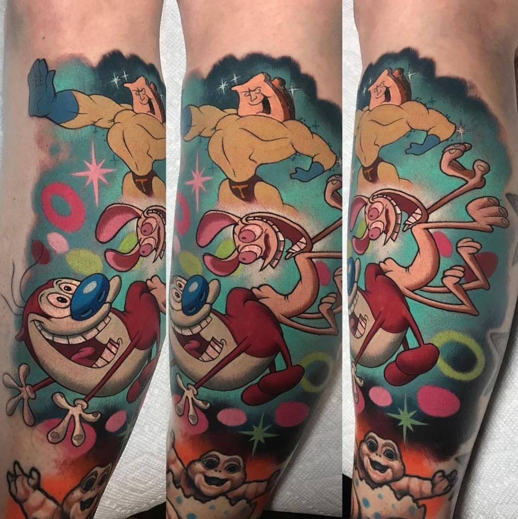 Ren and Stimpy tattoo by @theyoul