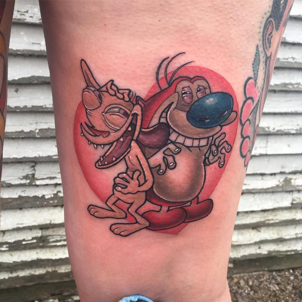 Ren and Stimpy love heart tattoo by @sadee_glover