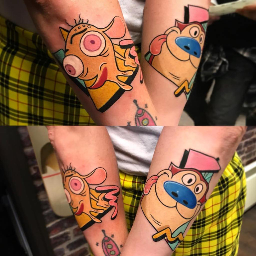 Ren and Stimpy tattoo by @nickbaldwintattoo