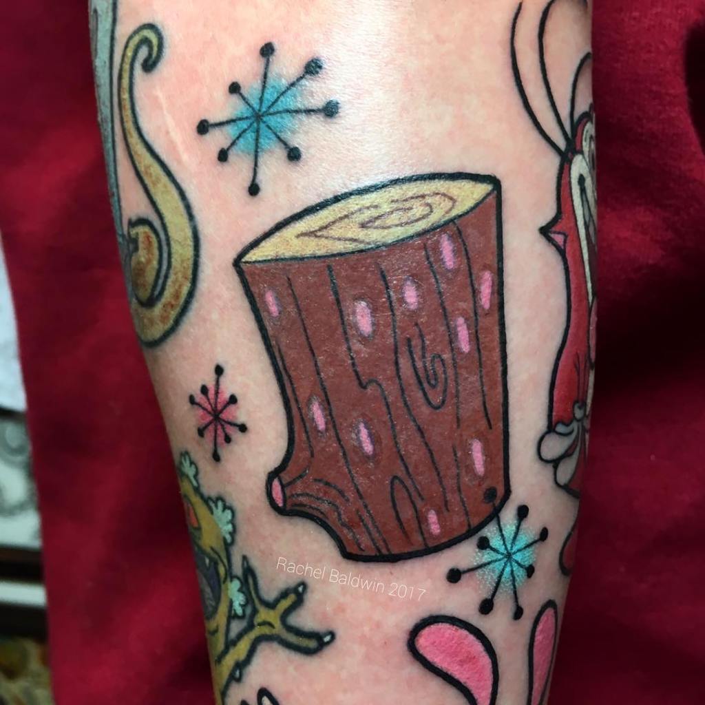 Ren and Stimpy log tattoo by @rachelbaldwintattoo