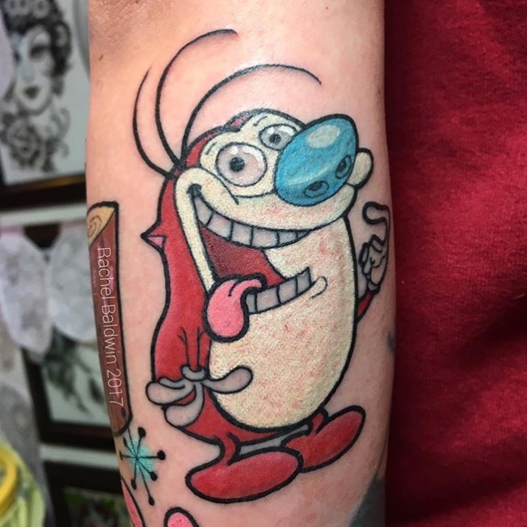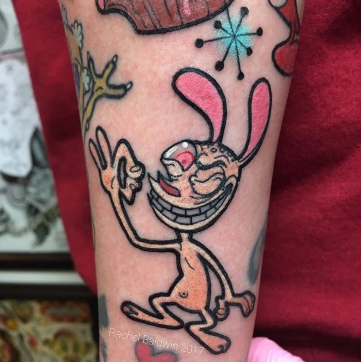 Stimpy tattoo by @rachelbaldwintattoo