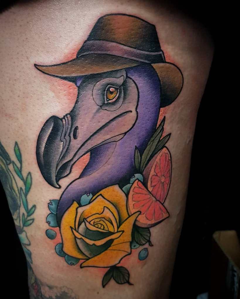 A dodo tattoo allows you some more creativity with the design – as long as the distinctively-shaped beak and its body remains a certain shape and proportion. Be inspired by these tattoos to experiment with themes, styles and colours with your own dodo tattoo.