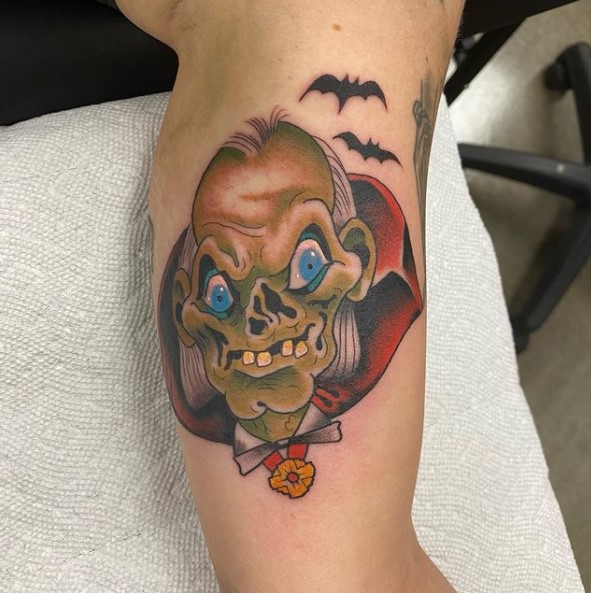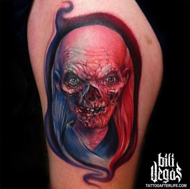 With Tales from the Crypt comic books, a live-action television show, an animated show, and feature films, you have a number of options to influence your tattoo. Comic book style, realism, and stylised/new school styles are what come to our minds but, like anything else, any tattoo style would suit given the talent and creativity of your tattoo artist.