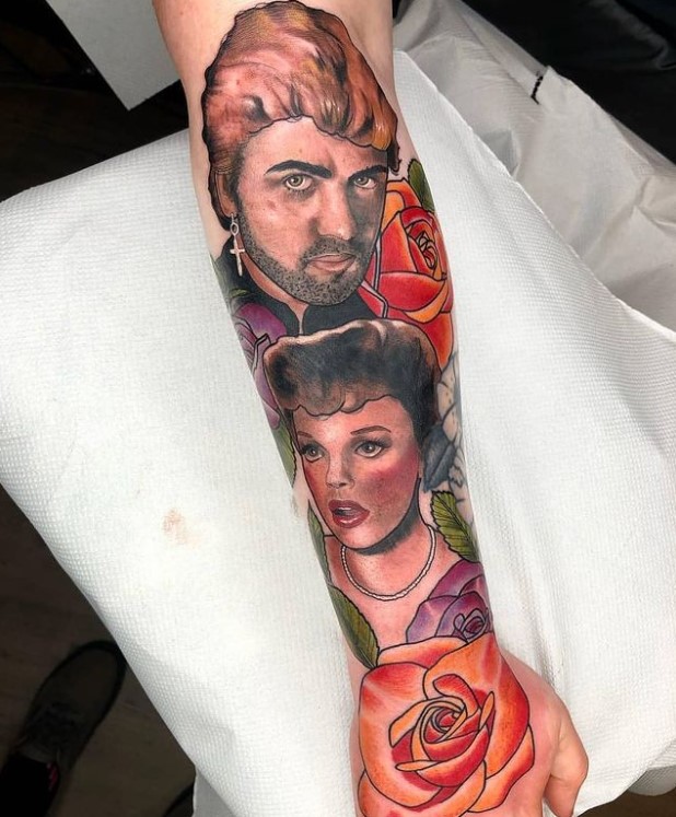 Despite having such a long career, it appears that Wham’s “Club Tropicana” and his solo song “Faith” have inspired most tribute tattoos, however each artist has managed to create unique pieces for their clients. To make your George Michael tattoo that extra bit special, consider using album covers, stills from music videos, or other photographs as reference for your tattoo.