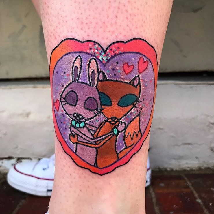 Kitty and Bunny (Courage the Cowardly Dog) love heart tattoo by @alexiscraneart