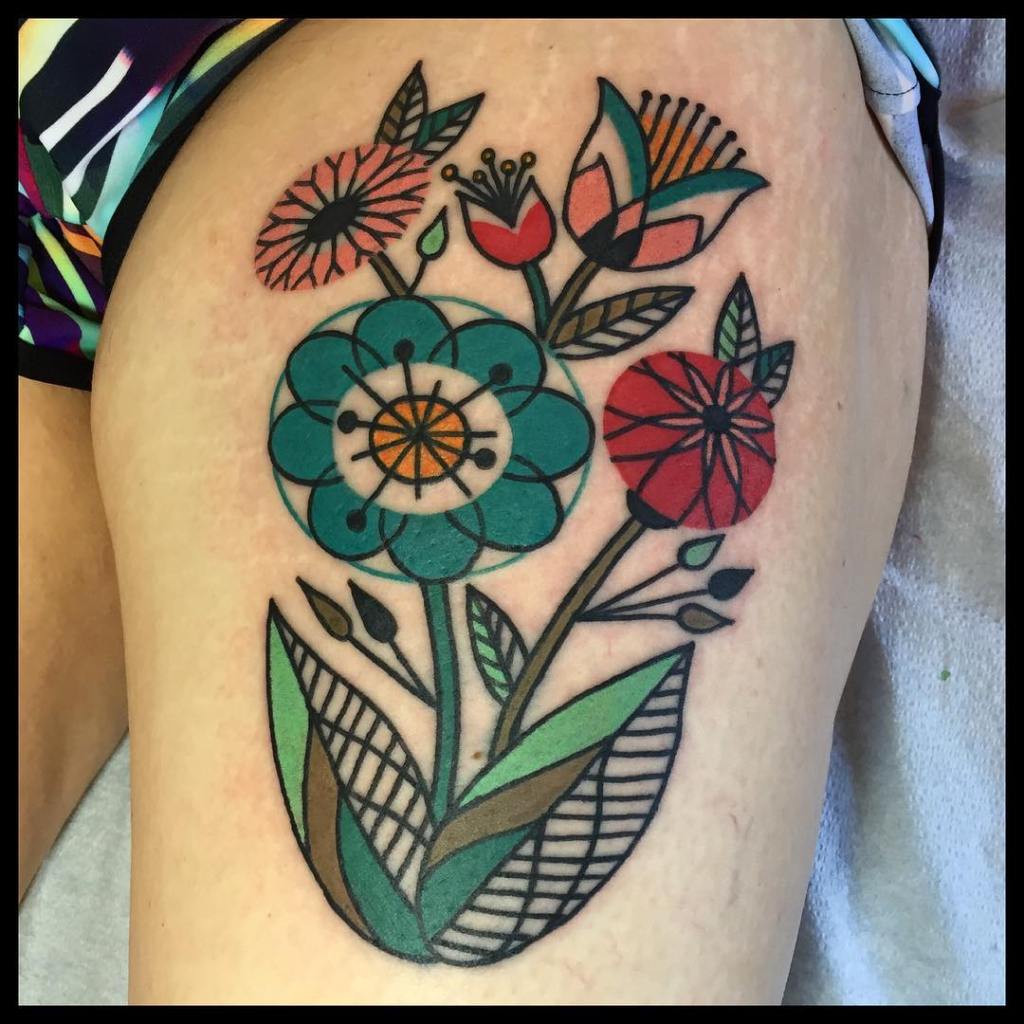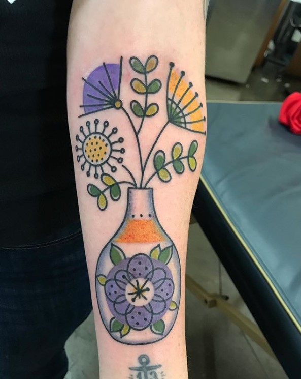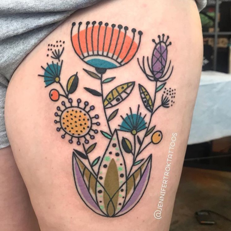 Within the vast array of tattoo styles on display online, Jennifer Trok has managed to combine the technique and application of traditional tattoos with floral mid-century modern interior design to create these unique pieces.